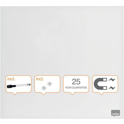 - Klein magnetisch whiteboard met een oppervlak van gehard veiligheidsglas, dat zeer goed bestand is tegen inktvlekken, penstrepen, krassen en deuken.