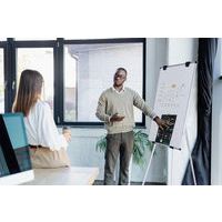 Schrijf op een blok papier voor flipovers of rechtstreeks op het whiteboard dat staand of liggend kan worden gebruikt.