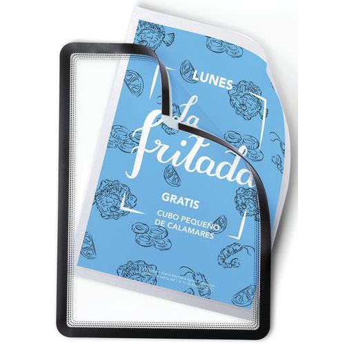- Heeft 4 magnetische strips op de randen voor een snelle omlijsting van documenten.