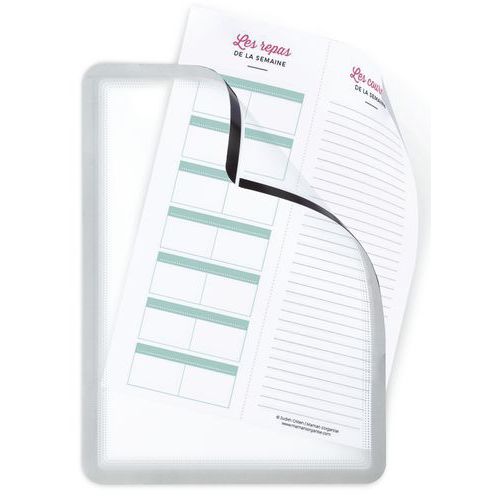 - Heeft 4 magnetische strips op de randen voor een snelle omlijsting van documenten.