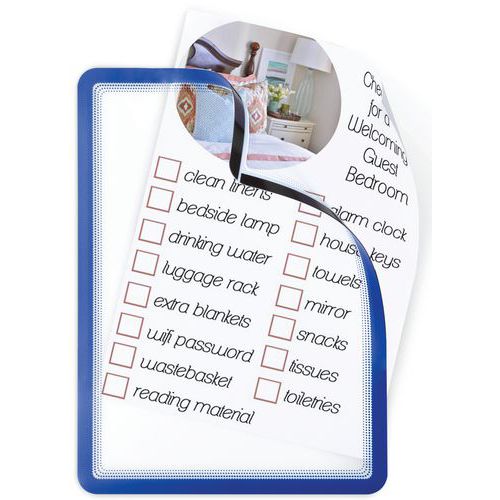 - Heeft 4 magnetische strips op de randen voor een snelle omlijsting van documenten.