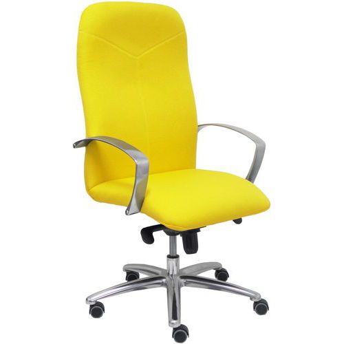 Managersstoel Caudete - Piqueras y crespo. In hoogte verstelbaar door middel van een gascilinder van 10 cm. Multi-positie kantelmechanisme met spanningsregelaar (maakt het mogelijk de stoel naar achteren te kantelen met behoud van de hoek tussen de rugleuning en de stoel). Gestoffeerde zitting en rugleuning van BALI-stof. Vaste armen van gepolijst aluminium Parketwielen, verchroomd met gas en zwenkend over 360°. Gemaakt in de EU Zithoogte verstelling Rughoogte-instelling