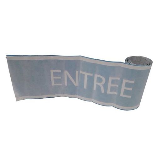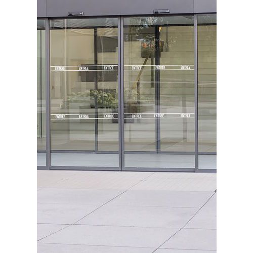| Productnaam | Markeerstrip entree voor glazen deur, Materiaal: PVC, Breedte: 10 cm, Bord kleur: Blauw, Karakters kleur: Wit |