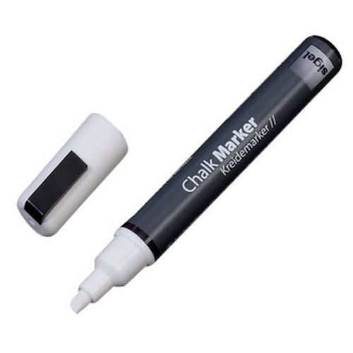 De gemakkelijk uitwisbare krijtstift is perfect voor opvallend schrijven op glad glas, glas-magneetborden en bijna alle gesloten oppervlakken.