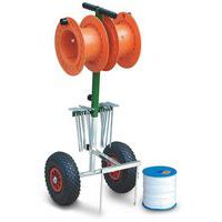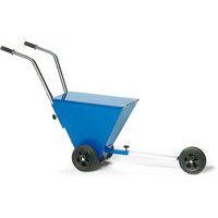 - Markeerwagen voor sportterreinen met 2 rubberen wielen (diameter 25 cm) en 1 stuurwiel vooraan (diameter 20 cm).