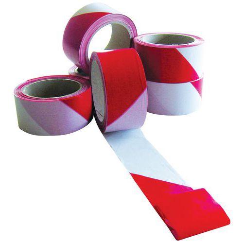Standaard kwaliteit of niet-rekbaar. Zichtbaar op zeer lange afstand. Voortreffelijke kwaliteit. Uitstekende spanningsbestendigheid. Diagonaal rood en wit gestreept. Breedte: 50 mm, lengte: 100 m