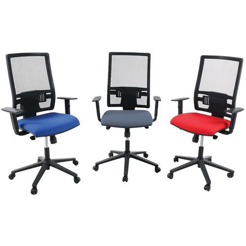 Bureaustoel Office met synchroonmechanisme. Vergrendelbaar op 4 standen met instelbare intensiteit en terugslagbeveiliging. . Polyetherschuim, dikte 5 cm op zitting. Lendesteun instelbaar via een schuifregelaar. Voldoet aan de norm NF EN 1335 1-2-3. Bureaustoel Office met synchroonmechanisme. Vergrendelbaar op 4 standen met instelbare intensiteit en terugslagbeveiliging. . Polyetherschuim, dikte 5 cm op zitting. Lendesteun instelbaar via een schuifregelaar. Voldoet aan de Europese norm NF EN 1335 1-2-3.