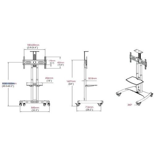 | Productnaam | Mobiele Peerless steun TRVT561, Verstelbare hoogte: ja, Aantal legborden: 1, Verstelbaarheid: Manueel |