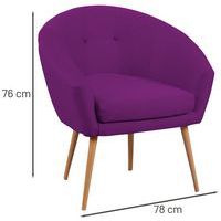 Spaanplaatstructuur, dikte l5 mm Bekleed met 100% polyester stof. Vast zitkussen, polyurethaanschuim, dikte 8 cm, dichtheid 28 kg/m3. B/H/D zitting: 46 x 46 x 46 cm. Hoogte rugleuning 35 cm. B/H/D fauteuil: 76 x 81 x 66 cm. Poten Ø 3 cm in naturel gelakt massief hout. Geleverd met pootjes die gemonteerd moeten worden. Gemaakt in de EU Klantgarantie : 3 jaar