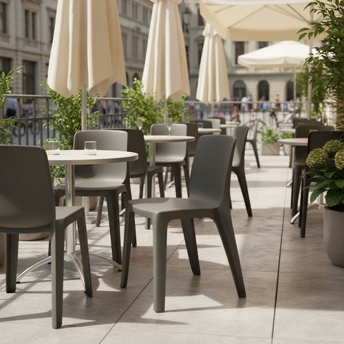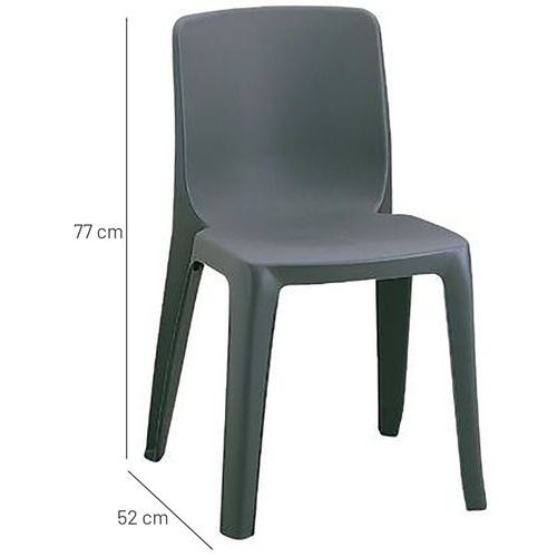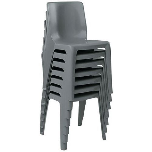 - Stoel uit één stuk, vervaardigd in polypropyleen met Franse classificatie brandwerendheid M2, geverfd in de massa, korreltjes aspect.