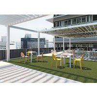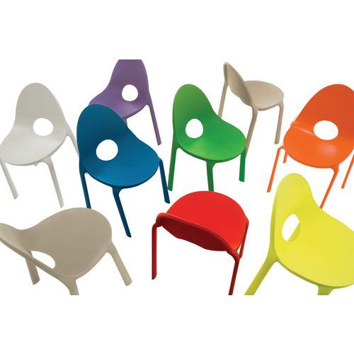 - De stoel Drop heeft een opening in de rugleuning om regenwater weg te laten lopen.