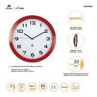 Wandklok quartz rond, Klokweergave: Analog (naald), Vorm: Rond, Kleur: Rood, Ø: 38 cm