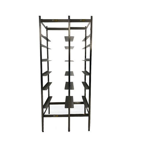 Stelling van RVS 18/10, speciaal voor apotheken. Afzonderlijk opbergsysteem op geleiders voor manden en containers. Hoogwaardig RVS voor een perfecte hygiëne van opgeslagen producten. Ideaal voor apotheekproducten!