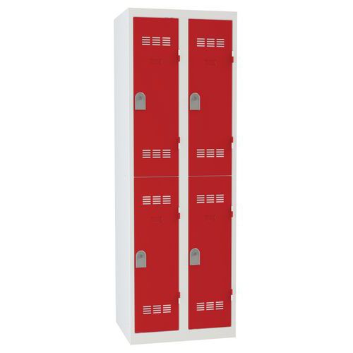 Meervaks garderobekast met 1 kolom met 2 vakken boven elkaar per kolom. Kasttype uit één stuk, in de fabriek gelast voor meer robuustheid en stevigheid. Voordelig en functioneel, dankzij de brede vakken. Voor het opbergen van verschillende soorten uitrustingen of voorwerpen. Geschikt voor scholen, sportcentra, ziekenhuizen, bedrijven, de tertiaire sector zoals industrie enz.