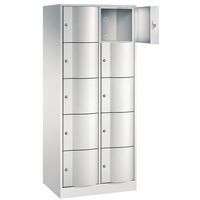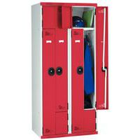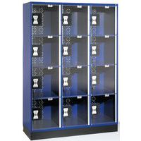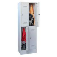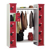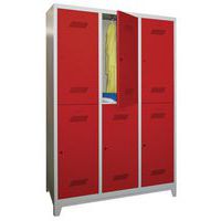 - Garderobekast op sokkel met metalen l-deuren elke kolom bevat 2 volledige garderobekasten met hangkast en opbergvak. scharnierende vleugeldeuren met een opening van 180°. sterk beveiligde en stille 2-puntssluiting (2 sleutels meegeleverd). ventilatie aan de voorkant en boorgaten voor zij-aan-zijplaatsing.
