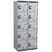 - Garderobekast van hoogwaardig plaatstaal, zeer stevig, vormvast. Gevormd plaatstaal 6/1e (conform standaarddoorbuiging 8/1e). Aan elkaar gelaste kolommen voor meer stevigheid. Uitstekende mechanische weerstand met gesloten klemprofiel. Deur onwrikbaar in open en gesloten stand, breukbestendig. De code kan voor elke gebruiker worden gewijzigd. De gebruiker hoeft slechts de deur bij het weggaan open te laten. Elke gebruiker kan zijn eigen code invoeren en zijn opbergvak sluiten. Er wordt een moedersleutel meegeleverd om opbergvakken open te maken.