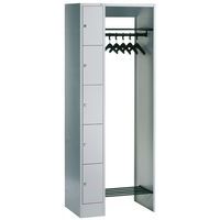 - Garderobekast op sokkel met 6 vakken en hanggedeelte, te monteren.