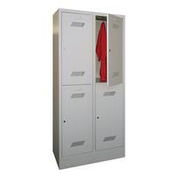 - Robuuste garderobekast van plaatstaal, eenvoudig, vormvast.