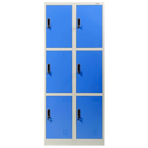 | Productnaam | Garderobekast, metaal, 6-vaks, blauw, Type garderobekast: Multi-compartimentente, Materiaal: Staal |
