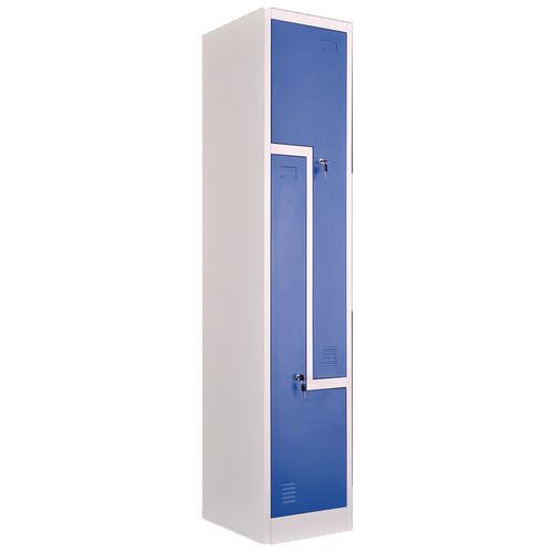 | Productnaam | Metalen garderobekast met 2 vakken en L-vormige deur, Type garderobekast: L-vormige deur, Materiaal: Staal |