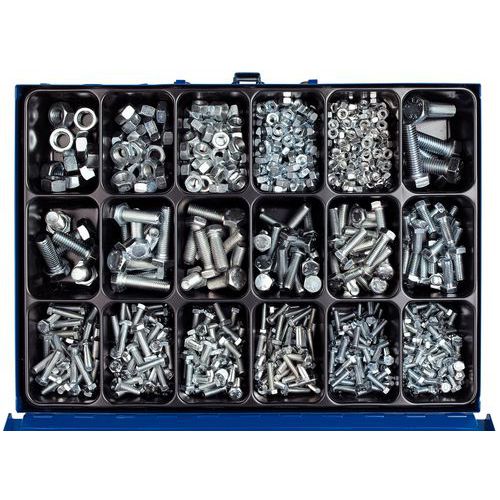 Metalen koffer met zeskantschroeven met volledige schroefdraad en zeskantmoeren - 950 stuks
