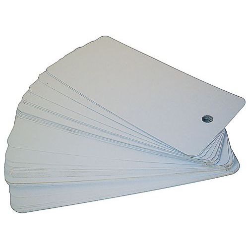 - Etiket met gat voor metalen bevestiging.