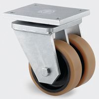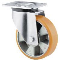 - Zwenkwiel met nylon velg en een slijtlaag in polyurethaan met vork in gegalvaniseerd staal, bestand tegen oliën en vetten.