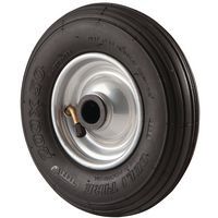 - Het wiel heeft een frame van diepgetrokken plaatstaal en rolt direct weg.