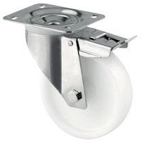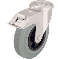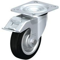 - Zwenkwiel met rem verkrijgbaar met rubberen, rubber-thermoplastische elastomeer of polyurethaan loopvlak.