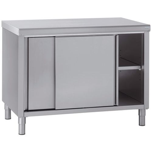 - Dubbele schuifdeuren, verstevigd door een onder plaat die als handgreep dient.