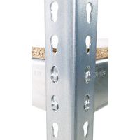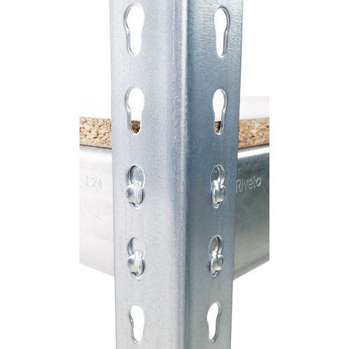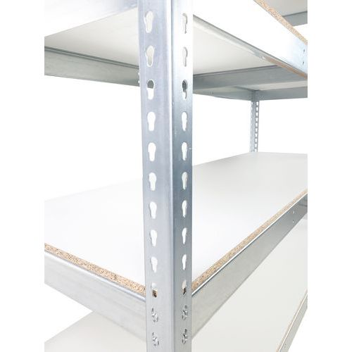 Industriële stelling, eenvoudig en robuust voor het opslaan van middelzware artikelen. Gemelamineerd legbord, perfect voor de opslag van kleine losse onderdelen en/of diverse containers. Legbord van spaanplaat (MDF) omhuld door thermisch verlijmde hars. Afwerkingen bestand tegen schokken en diverse omgevingen: verzinkt en grijs/blauw epoxy. Magazijnlegbord, eenvoudig en zonder technici of specifiek gereedschap te monteren.
