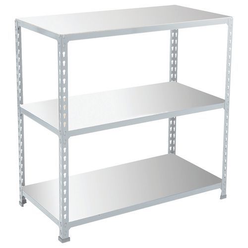 Middelzware stelling Manutan Rapid 2, Hoogte: 914 mm, Aantal niveaus: 3, Type legbord: Dicht, Breedte: 915 mm Middelzware stelling Manutan Rapid 2, Hoogte: 914 mm, Aantal niveaus: 3, Type legbord: Dicht, Breedte: 915 mm