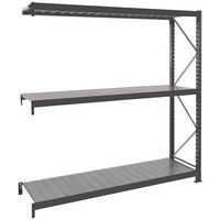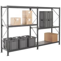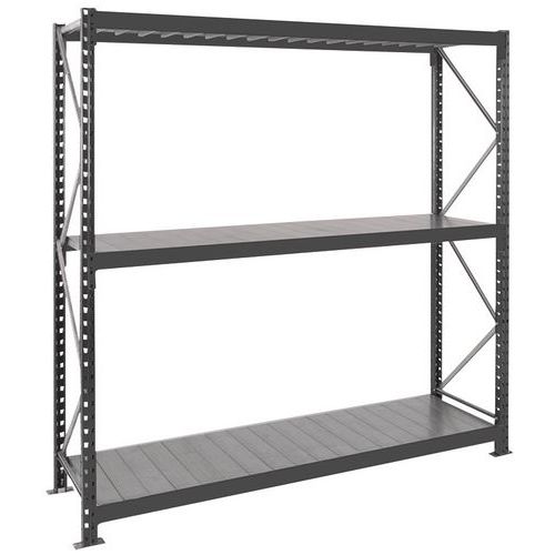 Robuuste en veelzijdige industriële stelling, stalen legbord. Zeer mooie afwerking met bestendige antraciet epoxylak. Stabiel en veilig met dwarsliggers bevestigd met veiligheidspennen. Juk met sokkel voor verankering in de vloer voor extra veiligheid. Eenvoudig te monteren stelling, uitbreidbaar met modules. Robuust en stijlvol!