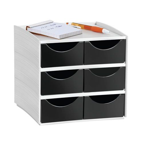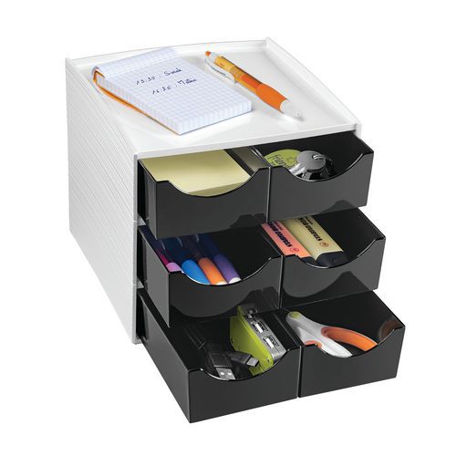 Voor het opbergen en ordenen van kleine accessoires en kantoorbenodigdheden: mobiele telefoon, agenda, USB-sticks, nietmachine, post-its, paperclips enz. Neemt niet veel plaats in.