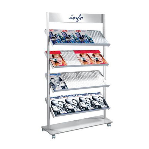 | Productnaam | Mobiel folderrek Rico, Aantal legborden: 4, Kleur: Grijs, Type product: 16 x A4, Totale breedte: 98.5 cm |