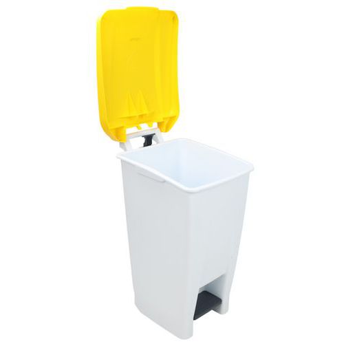 Mobiele afvalbak hanteerbaar dankzij 2 gladde wielen en de transporthandgreep. Afvalscheiding met gekleurde deksels. Eenvoudig te reinigen en met groot pedaal. Gemaakt in de EU HACCP Klantgarantie : 10 jaar