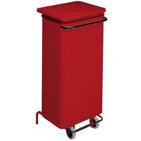 Pedaal en handgreep van staal met epoxypoederlak. Grote toegankelijkheid dankzij een opening van het deksel van meer dan 80°. Verwijderbare voorzijde voor het eenvoudig uitnemen van de zak. De voorzijde wordt gesloten en op zijn plaats gehouden met behulp van een band van elastiek. Groot pedaal voor gebruik volgens de HACCP-norm. Twee rubberen wielen voor een betere wendbaarheid.