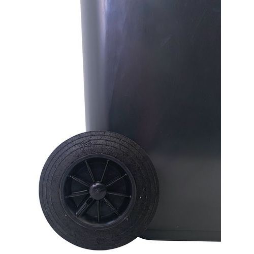 Container bestand tegen UV. Eenvoudig verplaatsbare container dankzij de 2 stevige wielen. Eenvoudig onderhoud van de container door het gladde kunststof oppervlak. Deksel met verschillende kleuren helpt bij de afvalscheiding. Voor buitengebruik