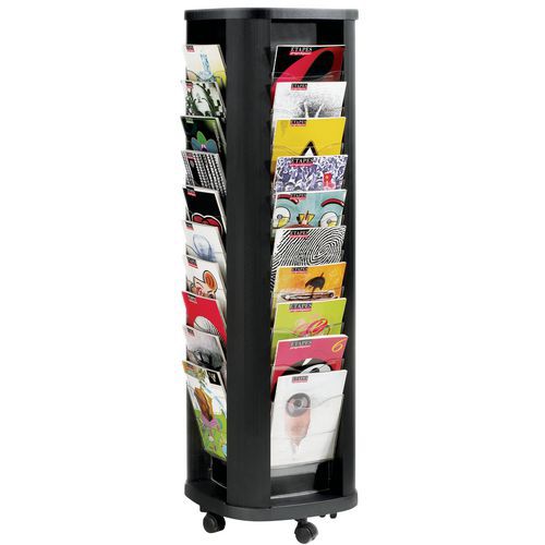| Productnaam | Mobiele foldercarrousel, Aantal legborden: 40, Voor formaat: A4, Kleur: Zwart, Type: 40 x A4 |