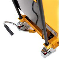 - Het hefplateau wordt bediend met een voetpedaal, eenvoudige werking.