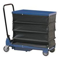 De 4 wielen met loopvlak laten geen sporen achter (2 bokwielen en 2 zwenkwielen waarvan 1 met rem).