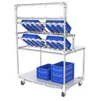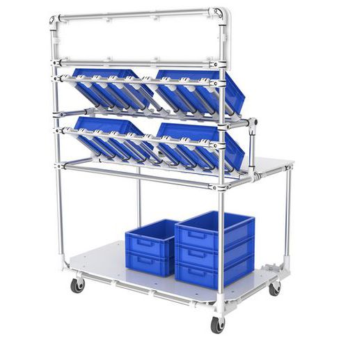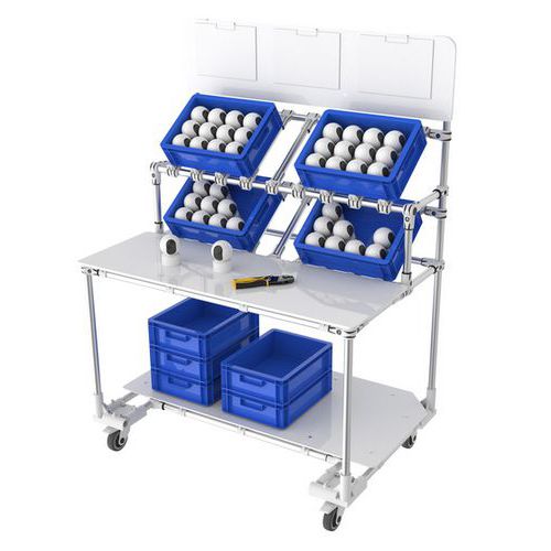 Mobiele werkpost met toevoer aan de voorzijde, 2 legborden met informatiepaneel - Trilogiq