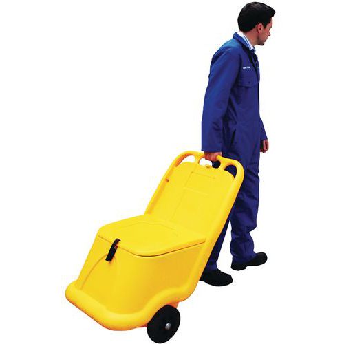 Kleine, mobiele zout- of zandbak van polyethyleen.