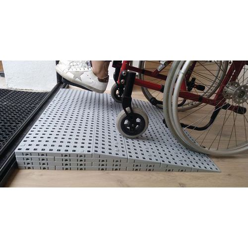 Modulaire drempelplaten om de toegang voor personen met beperkte mobiliteit te vereenvoudigen. Draagvermogen max. 2000 kg. Antislip en stevig. Franse makelij. Met deze plaat kan een hoogte van 18 tot 199 mm worden overbrugd. Deze drempelplaten zijn gemaakt van polyethyleen en volledig aanpasbaar aan alle treden