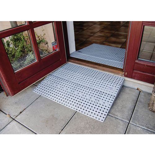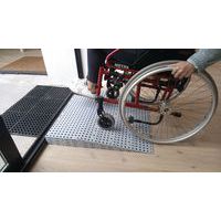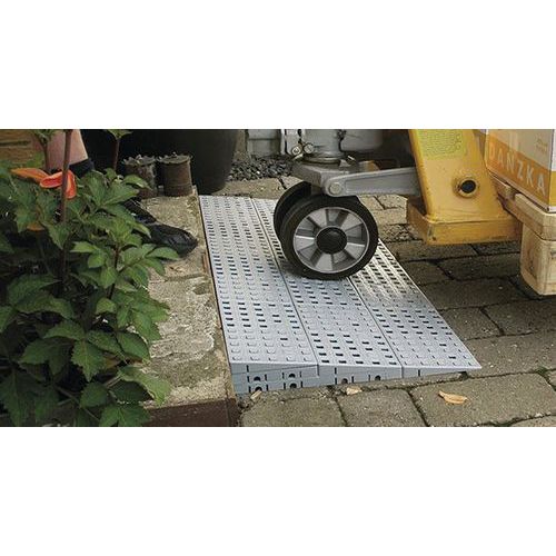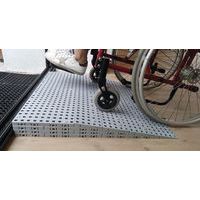 Modulaire drempelplaten om de toegang voor personen met beperkte mobiliteit te vereenvoudigen. Draagvermogen max. 2000 kg. Antislip en stevig. Franse makelij. Met deze plaat kan een hoogte van 18 tot 199 mm worden overbrugd. Deze drempelplaten zijn gemaakt van polyethyleen en volledig aanpasbaar aan alle treden