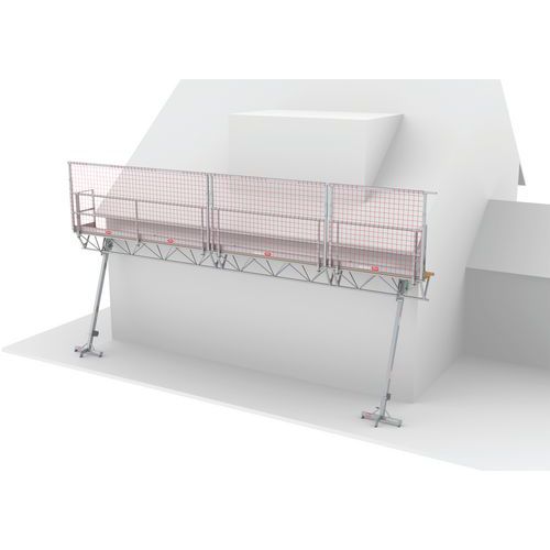 - Slechts enkele handelingen bouw je de modulaire componenten op tot een complete werkbrug met dakrandbeveiliging.
