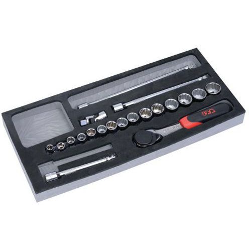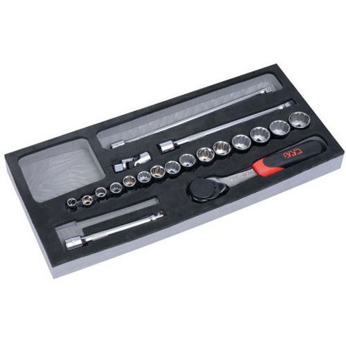 | Productnaam | Module 1/3 foam 3/8 ratel en doppenset 20 delig, Type nr.: 74-J20MM, Aantal stuks: 20 |