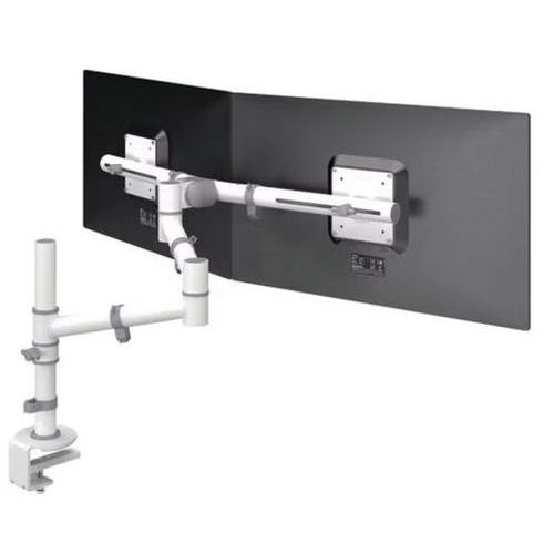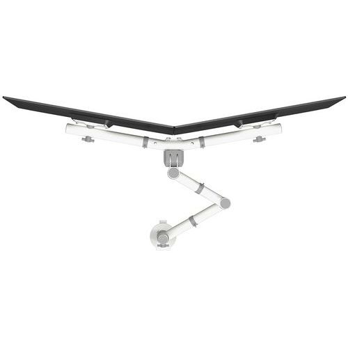 ondersteund gewicht van elk scherm: 4 kg Verticale kanteling: -55/+90° Horizontale kanteling: tot 360° Rotatie: 360° Kabelopbergmogelijkheid: ja Geleverd met bureauklem en schroefbevestiging door het bureau Voor bureaudiktes van 5-40 mm (klem) of 60 mm (door schroef) Schermafmetingen: 620 mm (breedte) en 900 mm (hoogte) Past op schermen in portret- en landschapsmodus