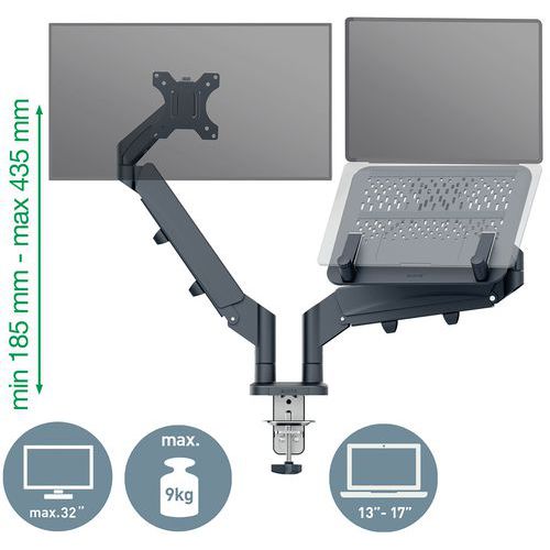 | Productnaam | Monitorarm en Laptoparm Ergo ruimtebesparend dubbel, Max. belasting: 9 kg, Kleur: Donkergrijs |