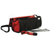 Samenstelling: - 1 soepele klepsluiting en 2 gespen - 1 groot vak voor het opbergen van gereedschap - 1 centrale handgreep - 2 handgrepen aan de zijkant - 1 schouderband.